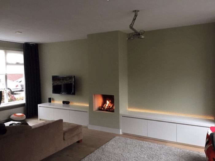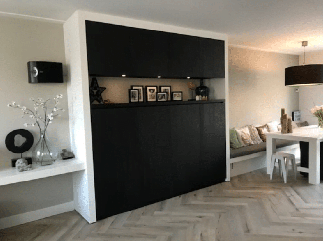 Als je inbouw wandkast op een plaats in de ruimte staat waar geen verlichting aanwezig is of het net wat donkerder is, kun eenvoudig verlichting toevoegen. Door het plaatsen van een dimmer kun je zelf altijd de lichtsterkte naar wens afstellen. Ideaal voor de juiste sfeer.