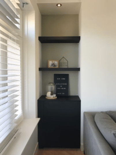 Door het integreren van spots in een open vak of nis kun je hetgeen wat in de nis staat heel mooi uitlichten en daarmee extra aandacht geven.