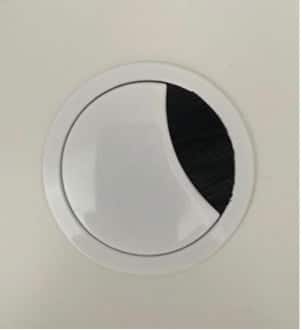 De tv-aansluiting moest netjes door het meubel kunnen verwerkt worden naar de apparatuur. We maakten een kleine inkeping in het blad op de gewenste plaats. Wil je liever geen inkeping of heb je meerdere kabels? Dan plaatsen we een doorvoerdop in het blad waardoor ook stekkers en stroomkabels van de TV rechtstreeks het meubel ingaan. Deze doorvoerdop is in wit, zwart en RVS (metaal) verkrijgbaar en heeft een platte bovenzijde, waardoor een tv of bijvoorbeeld soundbar hier stabiel op kan staan.