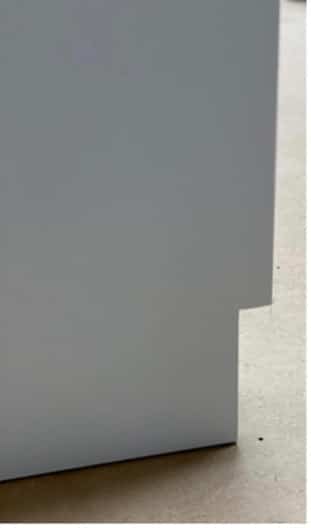 Daarnaast maakten we een plintuitsparing in exact dezelfde maat als de maat van de muurplint in het meubel. Hierdoor kan de kast helemaal strak tegen de muur geplaatst worden. Dit zorgt voor een strakker eindresultaat en…minder stofnesten!