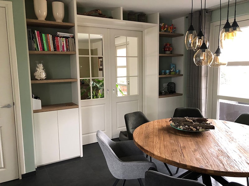 Een maatwerkmeubel is een slimme investering voor de toekomst in jouw interieur. Onze maatwerkmeubelen worden gemaakt van hoogwaardige materialen en gaan daardoor veel langer mee dan standaard meubels. Hierdoor hoef je ze minder snel te vervangen en kan het meubel naar verloop van tijd aangepast worden naar jouw wensen en behoeften door enkel een paar kleine aanpassingen te doen, zoals in dit geval alleen maar andere planken in de kast te leggen.